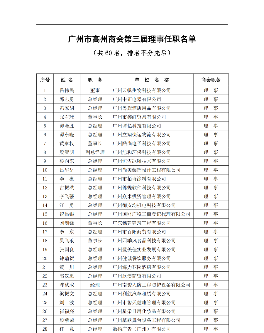 全体会员相信,在新一届商会领导班子带领下,大家将更加齐心协力,锐意进取,推动广州市高州商会更上一层楼!