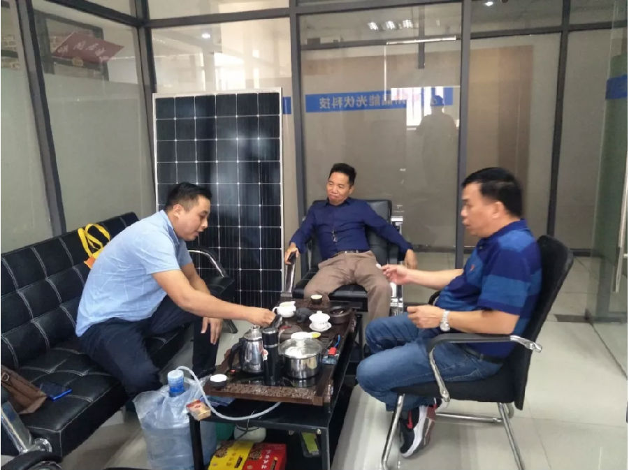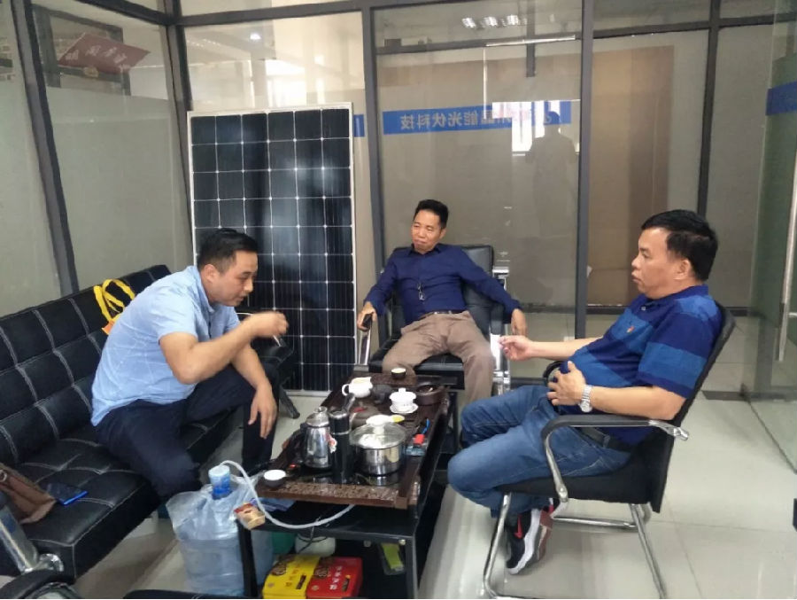 商会一行首先前往广州晶能光伏科技有限公司,企业合伙人肖总介绍公司发展情况。公司位于广州增城区新塘镇,致力于屋顶光伏电站、太阳能路灯、汽车充电桩的设计、承建和运维。公司坚守“质量赢得市场,诚信铸就品质”的企业理念,为客户提供一流高性价比的产品,通过售前、售中、售后的技术支持确保用户满意。具有丰富的设计、安装、运维等经验,从前期的咨询、勘查、方案设计,中期的施工、并网,再到后期运维等各个环节,为客户提供优质的光伏系统解决方案,做到一站式服务。作为一家光伏企业,一直秉着打造光伏生态圈,建美好家园理念,致力于太阳能光伏行业的市场开拓,收获更多阳光,享受绿色低碳生活,让我们携手阳光,共创未来。