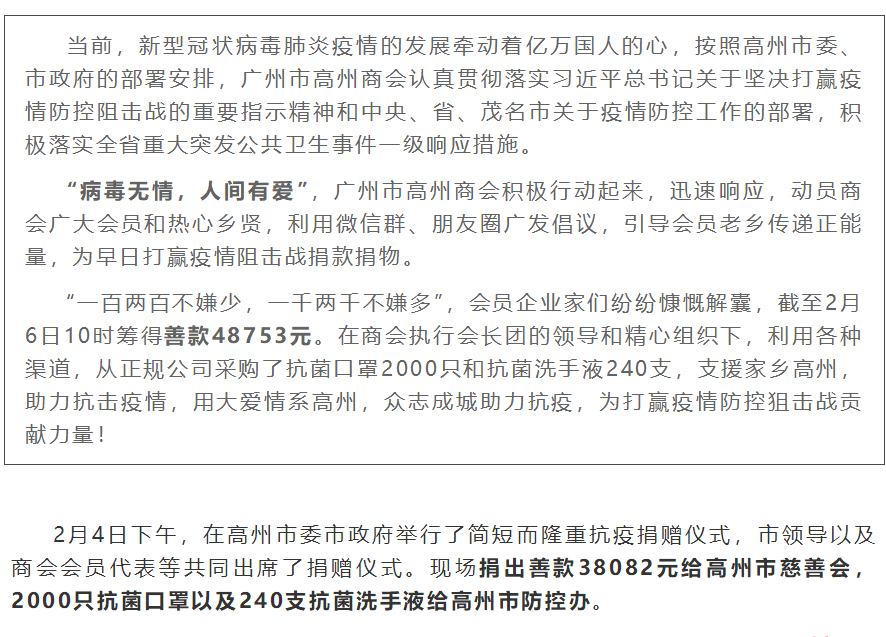 【抗击疫情】善意集成涓流!广州市高州商会献爱心