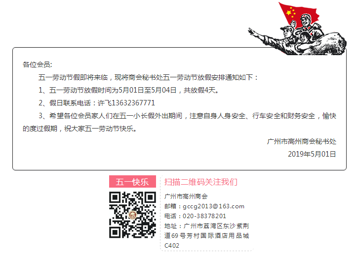 广州市高州商会祝大家五一劳动节快乐